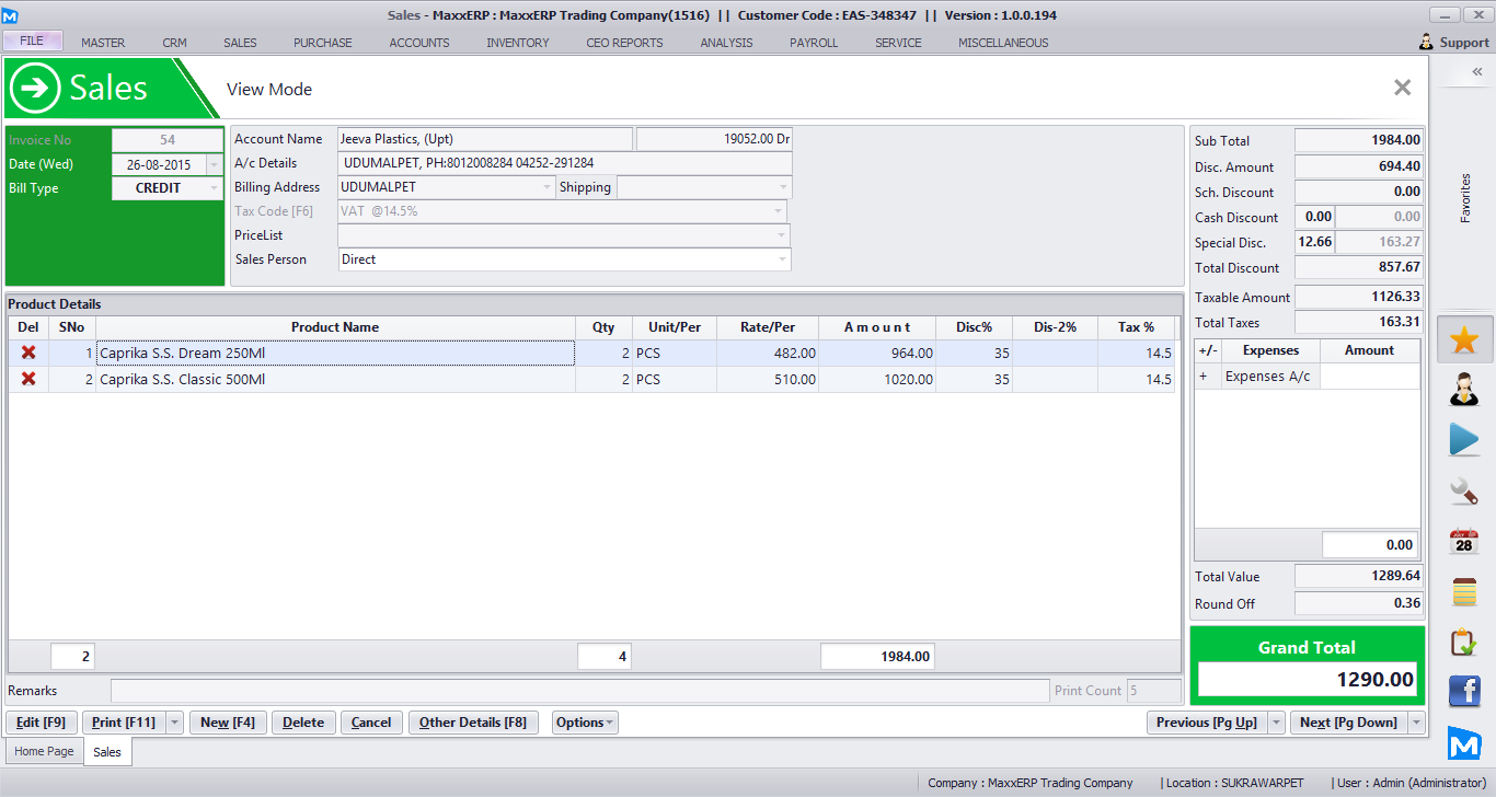 - Sales, Purchase, Orders, Challans, Quotation & Follow Ups, Taxation, Loyalty, Promotions